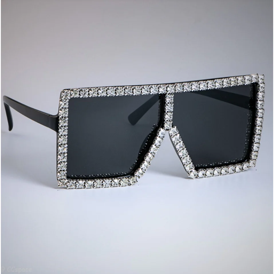 Experience a touch of glamour with these striking rhinestone-studded sunglasses. Designed to make a bold statement, these sunglasses are perfect for those who love to stand out in a crowd. The frame is carefully crafted from durable and lightweight polycarbonate, ensuring both comfort and resilience. The stunning rhinestone detailing adds an extravagant flair, transforming these sunglasses into a true fashion accessory.