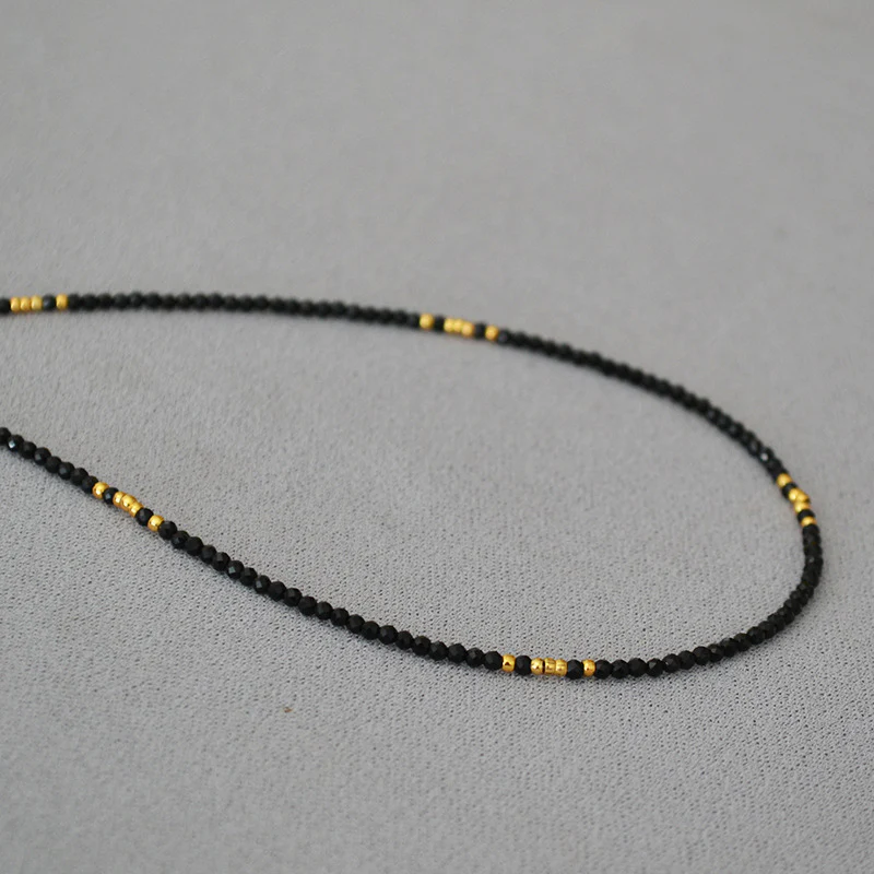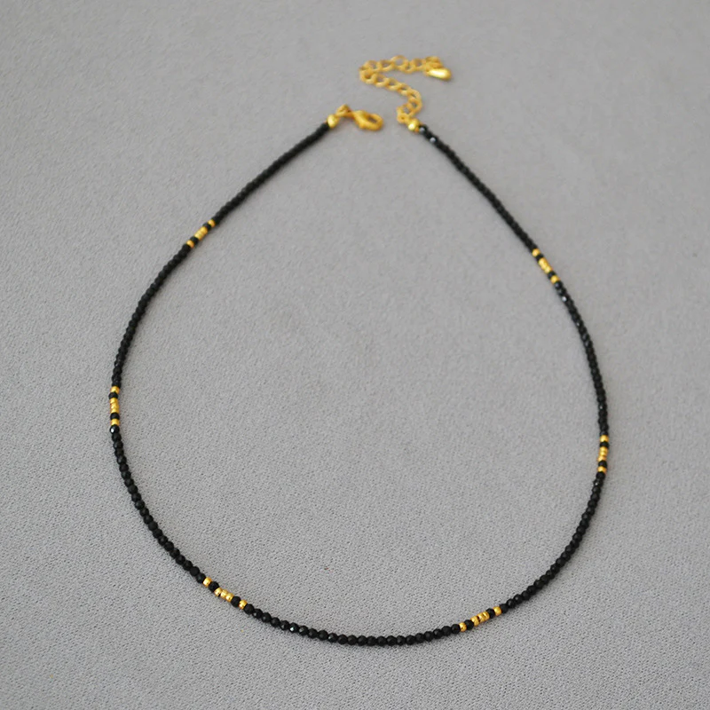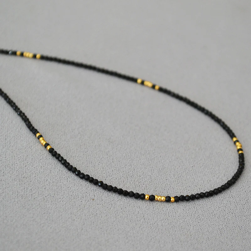 The lightweight materials ensure comfort during extended wear, making it an excellent choice for daily use. The black beads are smooth and polished, offering a subtle shine that complements the gold-tone accents perfectly. This combination creates a harmonious balance of colors and textures, making this necklace a versatile accessory.