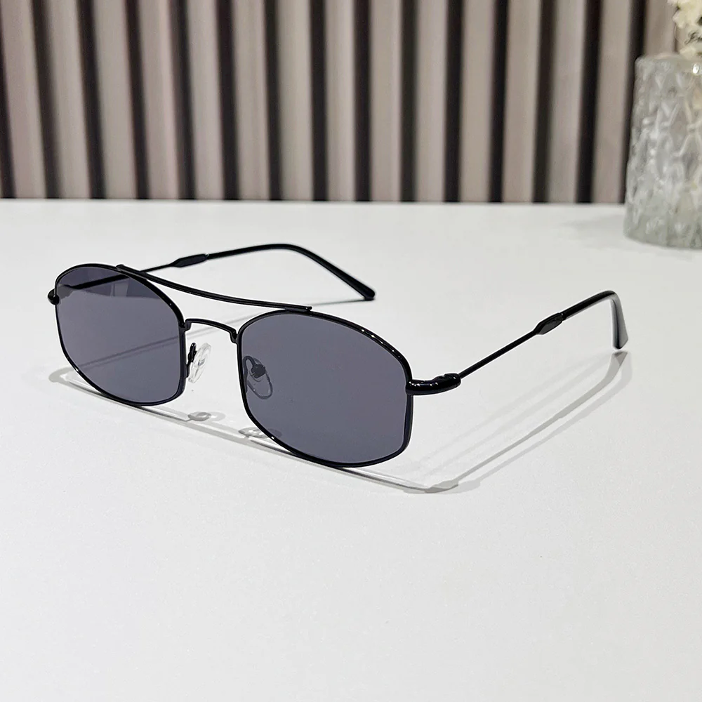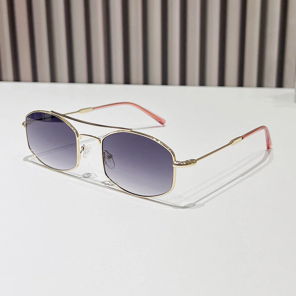 These trendy sunglasses boast a contemporary design, perfect for making a bold statement. Crafted from lightweight yet sturdy materials, they are ideal for those who value both comfort and style. The frame features a metallic finish that adds an elegant touch to the overall aesthetic.