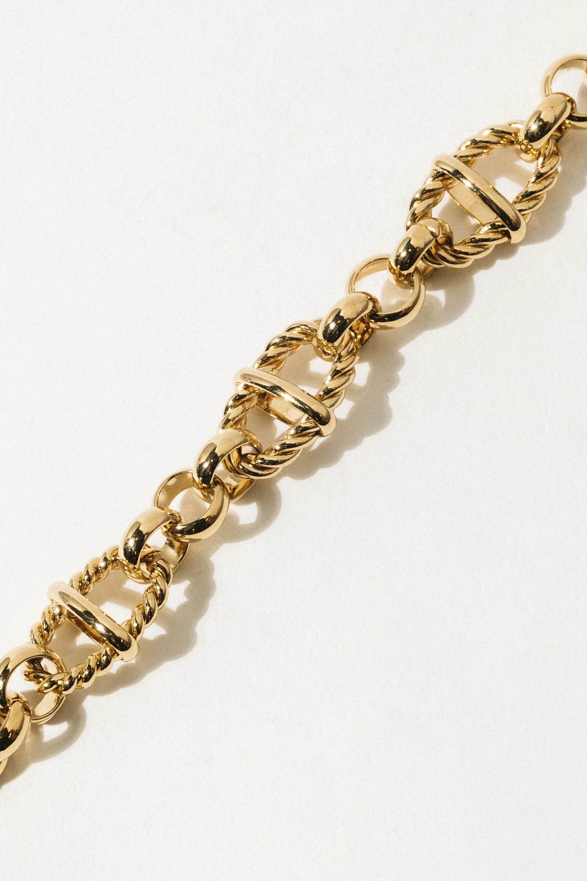 Crafted with attention to detail, this exquisite bracelet features a unique twisted link design that adds elegance to any outfit. Made from durable and eco-friendly aluminum alloy, this bracelet combines both style and sustainability.